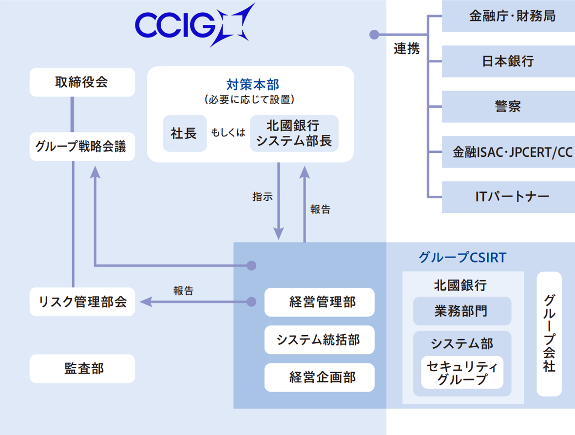 上記の基本方針に基づき、グループ全体で整合性のあるサイバーセキュリティ管理態勢を構築しています。
