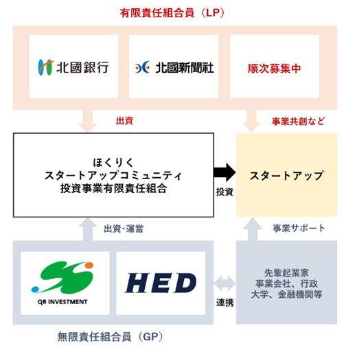 出資者 | 無限責任組合員(GP):株式会社QRインベストメント HED有限責任事業組合 有限責任組合員(LP):株式会社北國銀行 株式会社北國新聞社 ※順次募集中 |