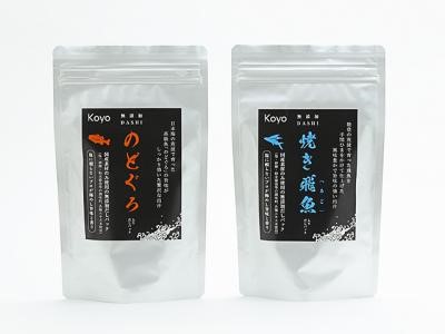 左:無添加のどぐろ入りだしパック 右:無添加焼き飛魚入りだしパック