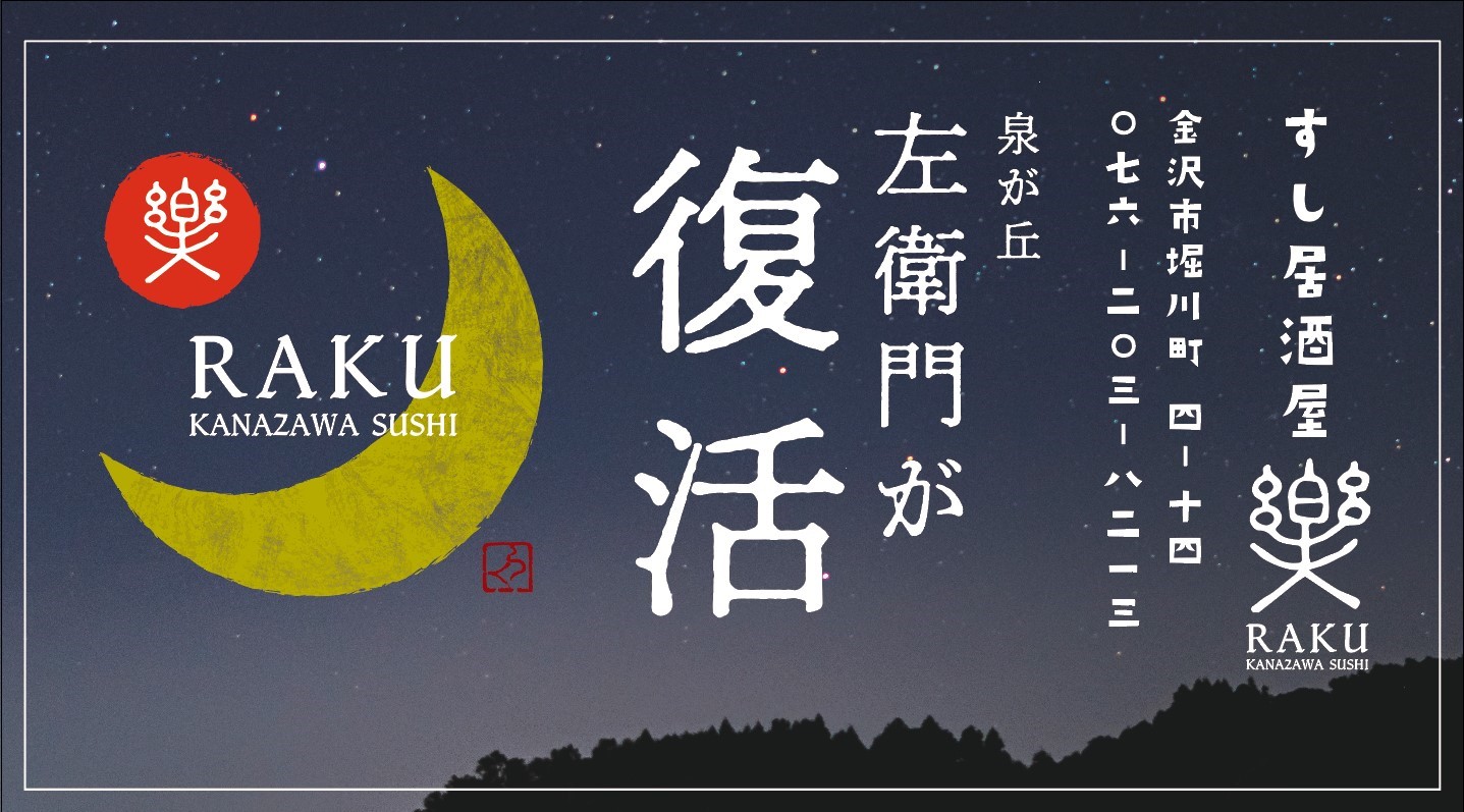 突然の閉店を決断しなければならず、お客さまから閉店を惜しむお声をいただきました。そこで私たちは「回転寿司 左衛門」の味を引継ぎながら、得意の和食・居酒屋料理もプラスした新店舗「すし居酒屋 楽(らく)」を金沢市堀川町に2024年9月4日オープンすることに決めました。