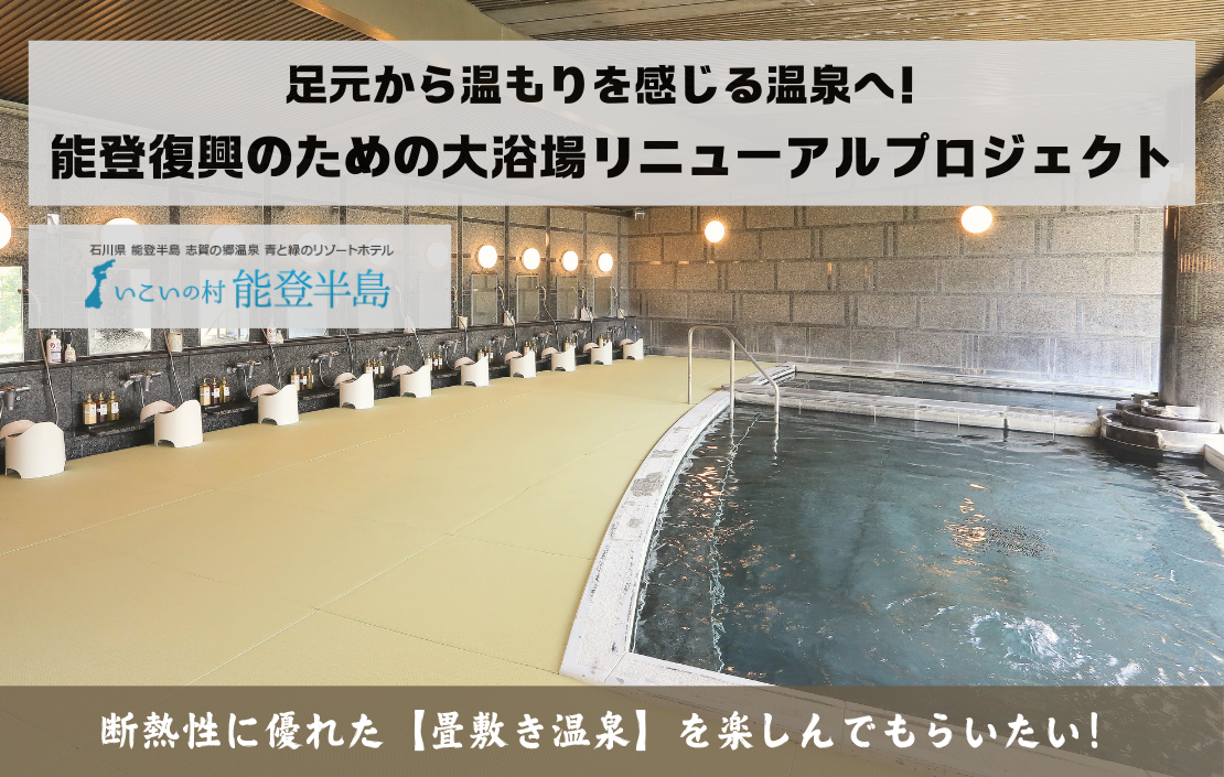 プロジェクト名 | 震災を経験した今こそ!足元から温もりを感じる温泉へ、能登復興のための大浴場リニューアルプロジェクト! |