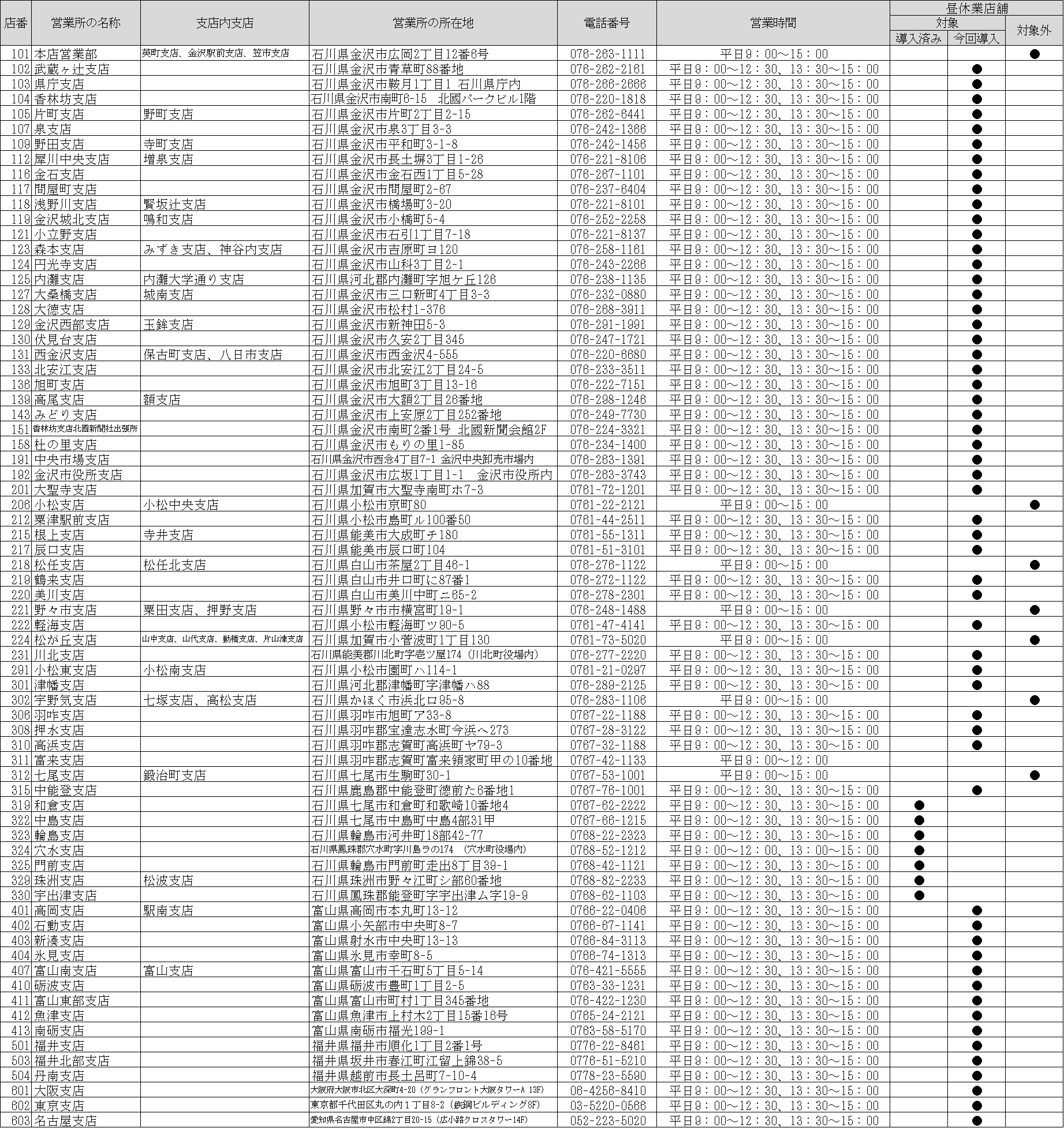 ※本店営業部、小松支店、松任支店、野々市支店、松が丘支店、宇野気支店、七尾支店はこれまで通り平日9:00~15:00で営業いたします。