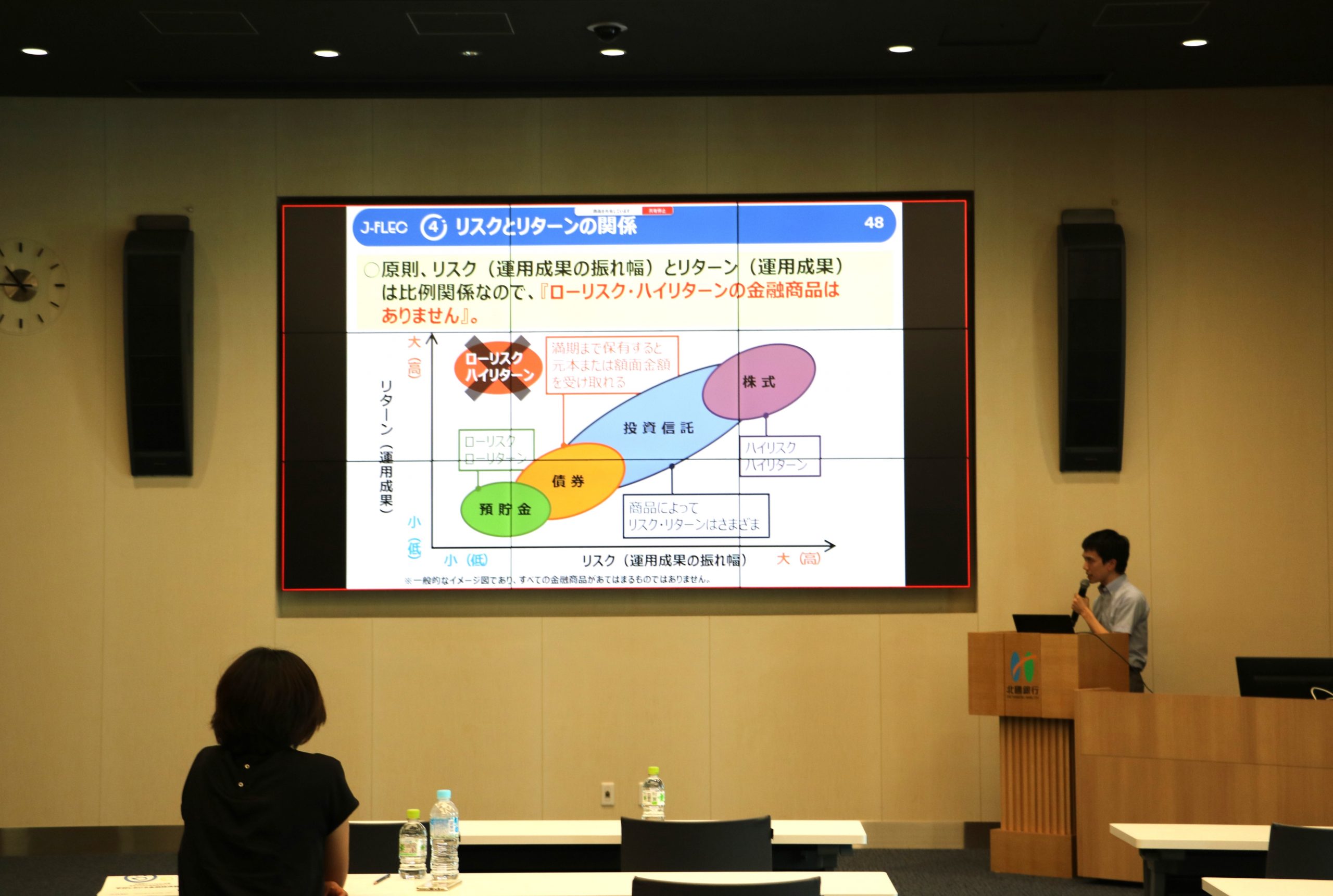 セミナーでは、J-FLEC髙澤 滉様に講演いただき、金融教育の大切さや学校での学習内容についてご紹介いただきました。