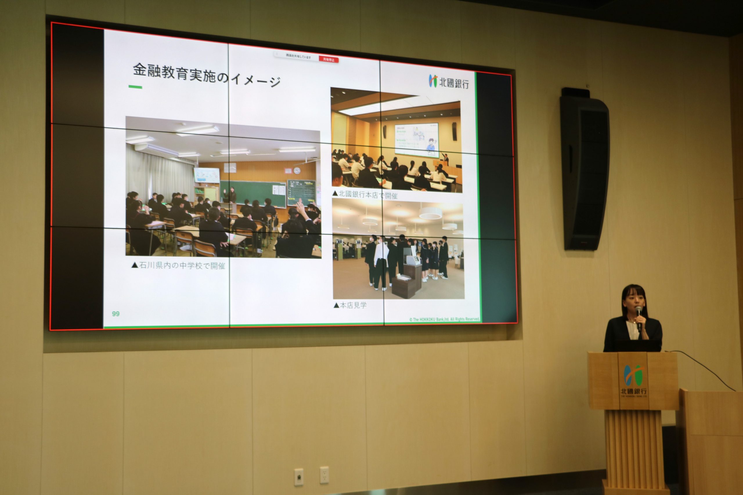 また、北國銀行が実施しているキャリア教育についてもお話させていただき、生徒の皆さんが学生のうちからキャリアについて考えることの重要性についてお伝えしました。