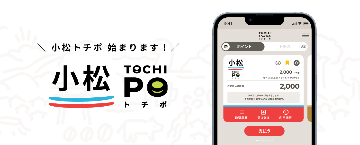 「小松トチポ」は「珠洲トチポ」「いしかわトチポ」「能美トチポ」に続く4つ目のトチポで、小松市内の250店舗以上のトチツーカ加盟店で利用できます。