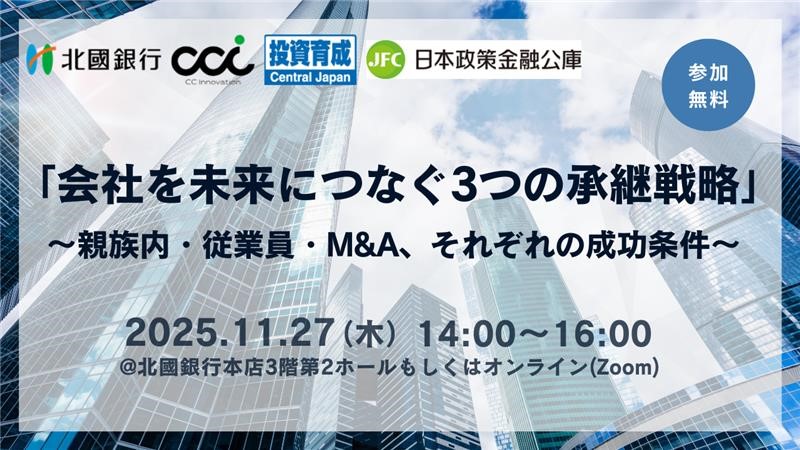 「会社を未来につなぐ3つの承継戦略」~親族内・従業員・M&A、それぞれの成功条件~ セミナーの開催について