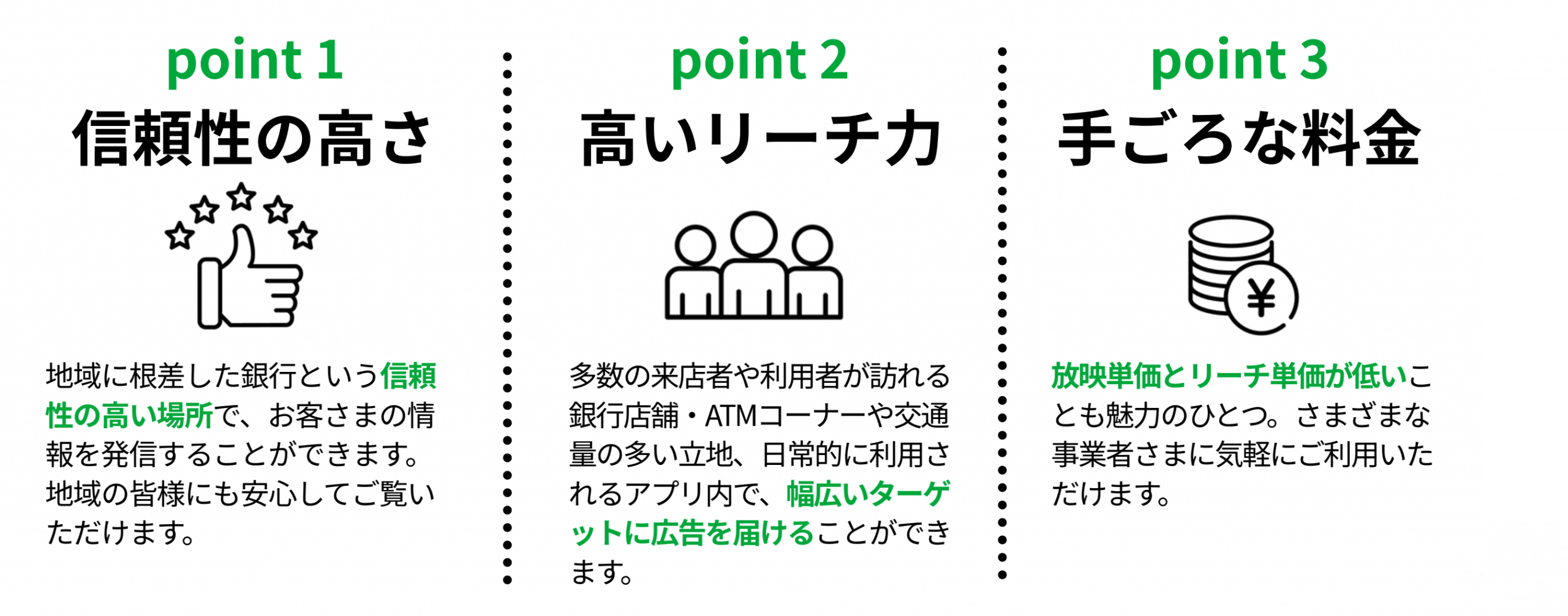 | サービス名 | ATM・外向けデジタルサイネージ広告 |