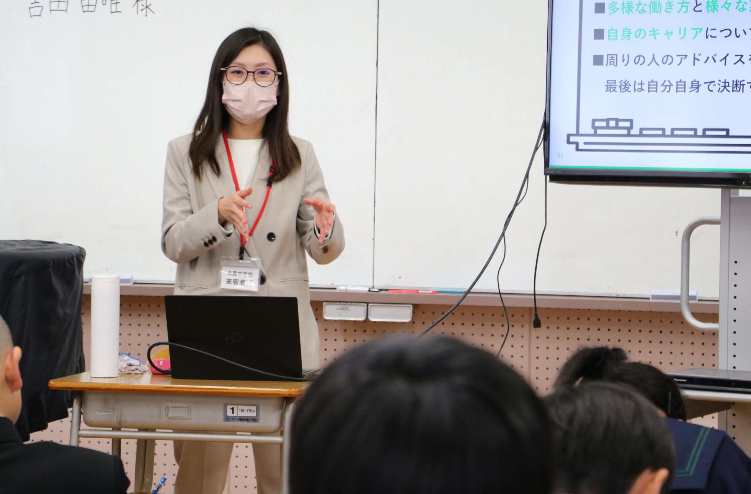 講話では、銀行の仕事やキャリア形成の必要性をお伝えしました。グループワークでは自分のキャリアについて考える時間を設け、積極的に発表いただきました。