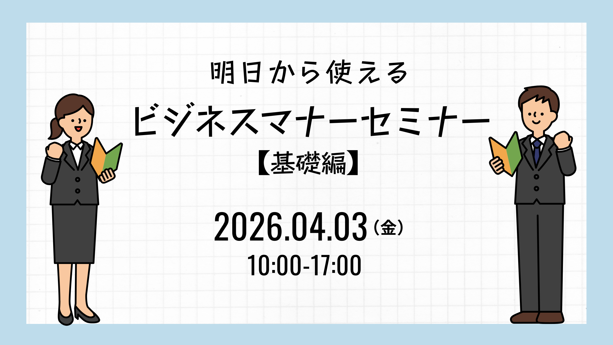 | タイトル | 明日から使えるビジネスマナーセミナー【基礎編】 |
