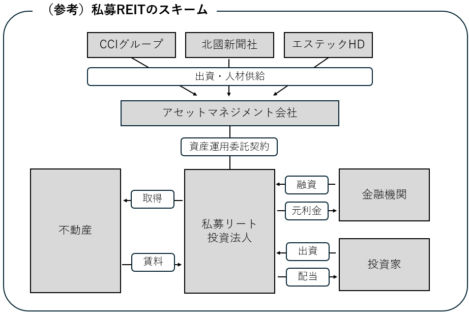 CCIグループは、金沢市に本社を置く金融持株会社です。伝統的な金融事業に加え、コンサルティング事業、投資事業、資産運用事業、地域活性化事業などの幅広い事業を展開し、地域課題の解決とともに、未来を構想し、挑戦し、創造する「ビジョナリーリージョン」の実現に取り組んでいます。今回の私募リート設立では、金融・投資分野の専門性を活かし、アセットマネジメントの中核を担います。