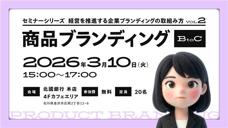 本セミナーでは、北陸の事例をもとに「選ばれる理由」を作る商品ブランディングの本質を解説します。実践ワークを通じ、戦略からクリエイティブ、デジタル活用までの工程を120分で体感いただけます。ぜひお申し込みください。