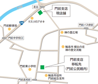 - 移転先のATMは、門前公民館1階に設置を予定しております。