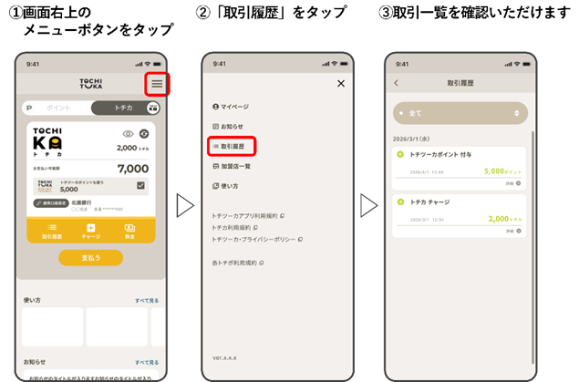 ※具体的な操作方法につきましては、「トチツーカ」アプリ内の案内をご確認ください。