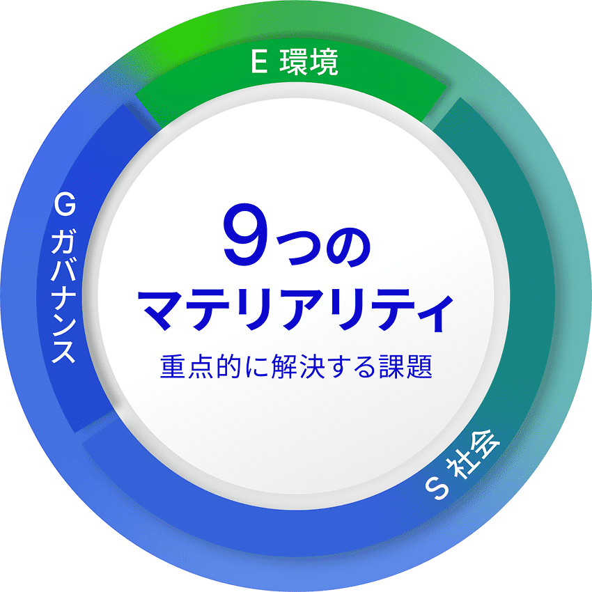 サステナビリティ方針のもと、9つのマテリアリティ(重要課題)を設定し、様々な取組みを進めています。