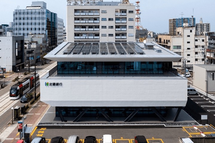 富山支店およびHirooka Terraceでは、消費エネルギーの削減に加え、創エネ技術である太陽光発電パネルの導入により、Nearly ZEBを取得しました。